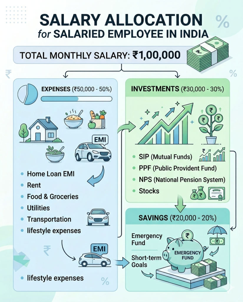 Salary Allocation Examples (₹25K, ₹50K, ₹1L)